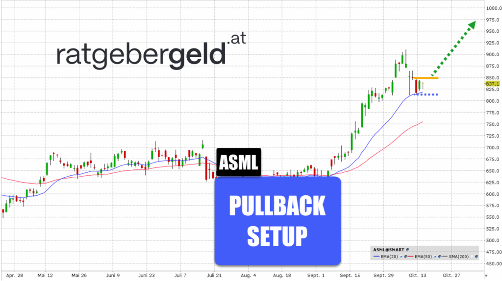 14.10.2025 WolfgangZussnerASML: Ist der Pullback zum 20er EMA die ideale Kaufchance?Chance zur Trendfortsetzung! Rückblick Die Aktie befand sich seit Anfang September in einem sehr starken, dynamischen Aufwärtstrend. Die grünen Kerzen sind dominant, und der Kurs notiert deutlich über den gleitenden Durchschnitten, was die bullische Stärke des Marktes untermauert. Nach dem Erreichen eines Hochs (im Bereich von ca. 900 Euro) korrigierte der Kurs in den letzten… ARTIKEL LESEN